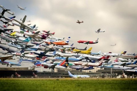 하노버 공항의 이착륙 사진(겹쳐 촬영)