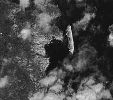 우주에서 본 코스타 콩코르디아의 전복 사진