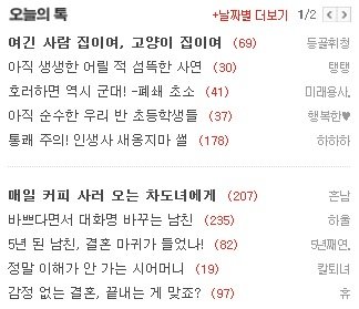 메인에!! 그것도 가운데!!!!!!! 오늘의 톡 맨 첫번쨰!!!!!!