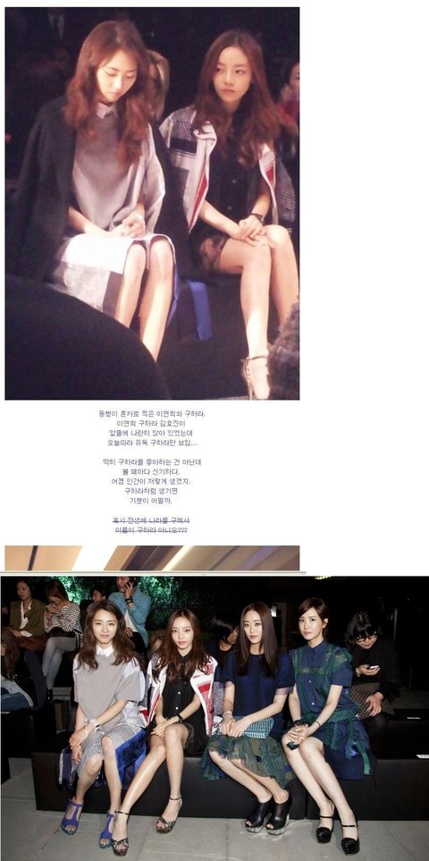 SM에서 비주얼 원탑이라는 이연희도 구하라 옆에서는 오징어 신세군. 연희야 웬만하면 카라옆에 있지마 ㅠㅠ http://blog.naver.com/mich1974/120188666835