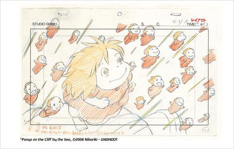 ‘벼랑 위의 포뇨’ 레이아웃으로 구성된 ‘스튜디오 지브리 레이아웃 展’ 포스터.