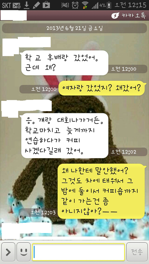 나말고 다른여자가 오빠 차에 탄것도 화나고 밤에 같이 커피숍가서 웃으면서