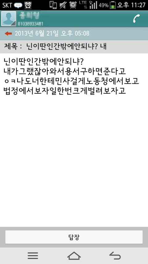 하지만 돌아오는건 계속 똑같은 말..전 어떻게서든 대화로 풀어갈려고 했는데 사장은