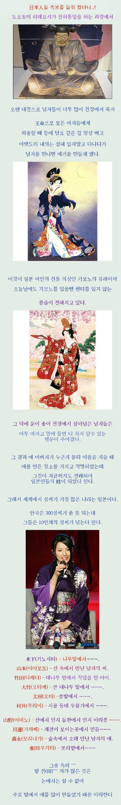우선 기모노 입어보면 개소리라는 걸 알테고.일본의 성은, 원래 성이란게 없다가 갑자기 호구조사 하면서 국가적으로 성을 만들게 됨.짓기 편하게 집의 위치로 성을 만들어서 한집에 사는 사람들을 같은 성으로 묶어버림.미국의 성이 직업이름이 많은 거랑 비슷함.애를 만든장소하는게 개소리인게죄다 실내는 없고 야외라는거. 논에 관한 성이 잘 보이지 않는 것은 일본은 지리적으로 척박해서 밭이 많기때문임. 그래서 밭 한가운데를 뜻하는 다나까 라는 성이 많은거임.나도 일본은 싫어하지만 이런식의 조롱으로 우월감 느끼는건 원래 일배에서 하는 짓임.비판과 조롱을 분리 할 필요가 있음.