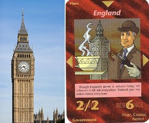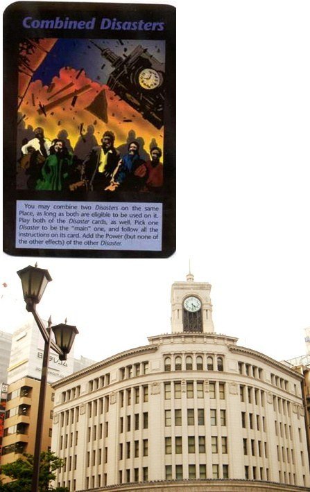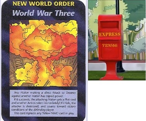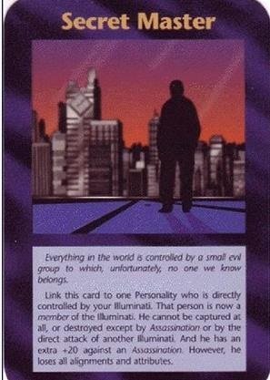※ 밑에, Secret Master(비밀스러운 지배자)라는 제목의 일루미나티 카드를 보세요, 잘 보시면 시계탑이 파괴되어 있는 것을 볼 수 있을 것입니다. 시계탑의 대명사는 영국 런던에 있는 '빅벤(Big Ben)'이므로, 이 비밀스러운 지배자는 시계탑이 파괴되면, 즉, 영국 런던이 테러를 당하면 실체를 드러낼 것임을 암시하는 것으로 해석됩니다.
