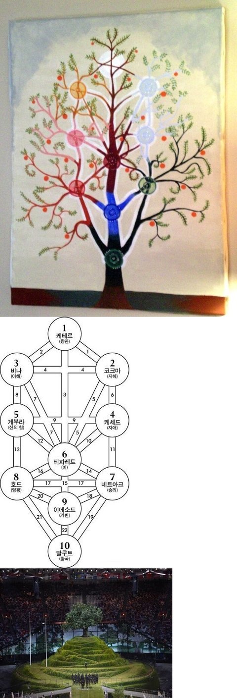 ※ 밑에 스샷은 카발라(유대교의 신비주의적 교파, 또는 그 가르침을 적은 책) 의식의 핵심인 생명나무와 10개의 세피로트, 22개의 통로를 설명하고 있는 그림입니다. 원래 생명나무는 영원한 생명을 주는 예수 그리스도를 상징하는 것인데, 일루미나티는 이를 모독하기 위해 자신들의 오컬트 의식의 수단으로 활용하고 있습니다. 런던 올림픽 개막식에서도 이러한 생명나무가 등장했습니다.