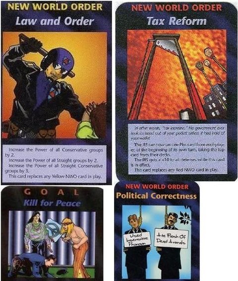 Political Correctness(정치적 정당성, 차별적인 언어 사용 및 행동을 피하는 원칙)이라는 제목의 카드를 보세요. 관계없는 대명사를 사용했다는 이유, 죽은 동물의 고기를 먹었다는 이유 등등의 황당한 이유조차 죄로 만들어서 많은 사람들을 처형할 듯합니다.
