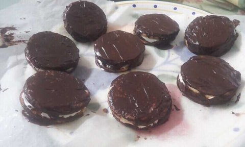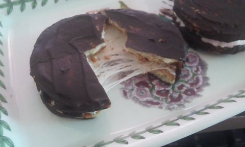 우리나라 초코파이랑 비슷한데 스폰지케이크대신 쿠키가 들어있는ㅎㅎ