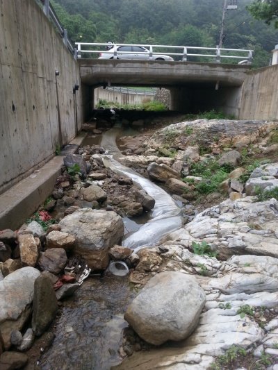 용수로 현재까지('13. 7. 2) 사용하여 하류 올챙이와