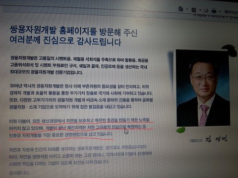 ** 쌍용 자원개발은 우리나라에서 대기업 입니다. 대기업이 하천을 무단훼손하고