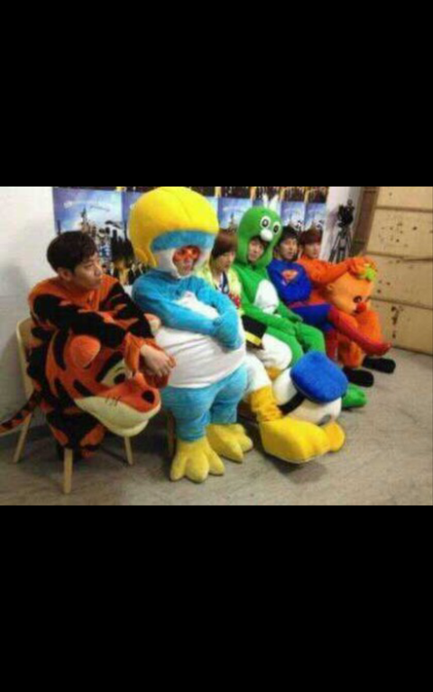 귀여운 인형옷 입은 아이돌 멤버들