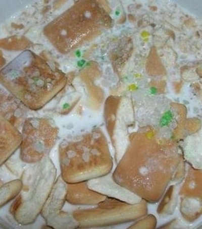 건빵을 수저로 대충 부시고 우유에 넣은 다음~별사탕 투하(별사탕도 숟가락으로 부시기도 함)