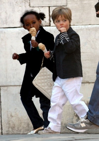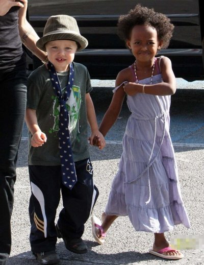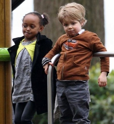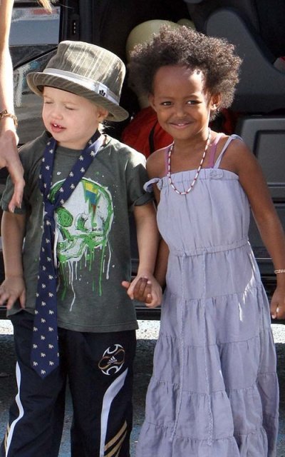 2005년 에티오피아에서 입양한 큰딸 자하라와 2006년 낳은 샤일로