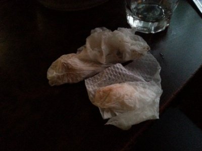술집 다른곳으로 가고싶었지만 옮기기도 뭐하게 휴지로 잔여물 닦았을 때