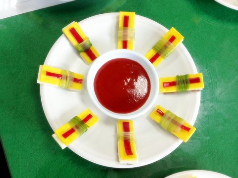 이거 겨자를이용한 요리예요~ 제단하고큰대접에다가 겨자넣어서 묻혀주고 예쁘게 셋팅해주면 됍니다! 제법 새콤매콤 먹을만합니다 특히 고기요!