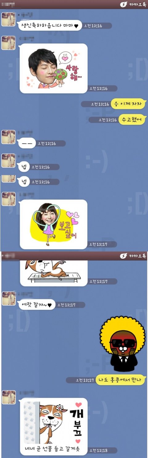 언니에게 생일 축하 카톡이 도착햇어요~!