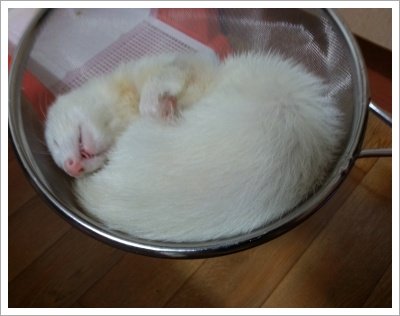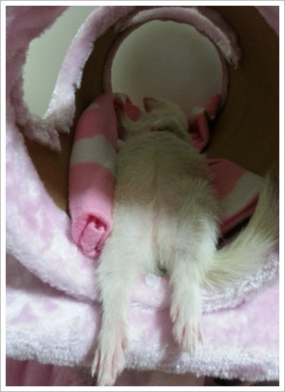 일단 페럿 일생의 반이상을 잔다고 할만큼 대부분을 잠으로 보냅니다 .
