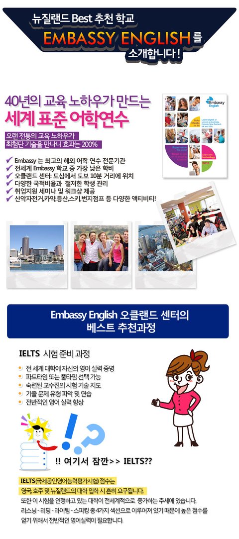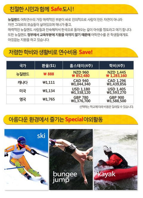 [Today's 추천 Best]뉴질랜드 어학연수의 가장 매력적인 부분이 바로 인위적으로 사람이 만든 자연이 아니라 자연 그대로의 모습들이 살아있으며 매너가 좋고 매력적인 뉴질랜드 사람들과 친숙해져서 한국으로 돌아오는 길이 아쉬울 정도라고 합니다.