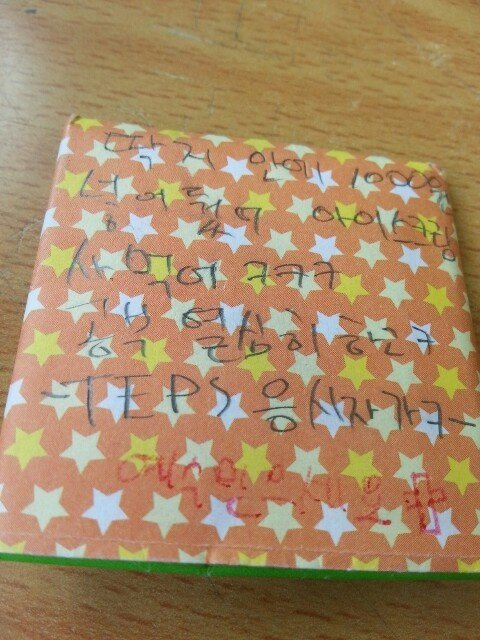 제일 예쁜ㅋㅋㅋㅋㅋ 별무늬딱지 뒤에 뭐라고 글씨가 있었습니다.