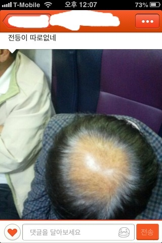 버스에서 모르는 할아버지 정수리를 찍어서 전등이 따로없다고 글을 올린거에요..