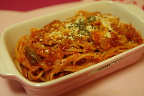 토마토 스파게티에 엄마가 좋아하는 모짜렐라 가득
