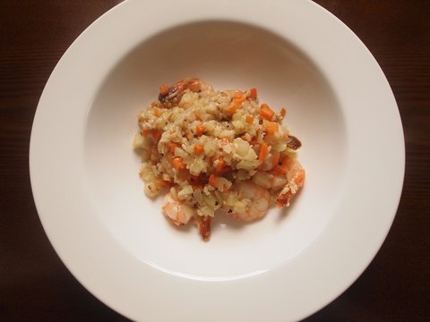 다이어트한다고 현미밥에 새우랑 넣고 올리브오일에 양파 당근넣고 볶아먹은..