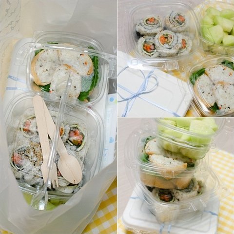 유부초밥이랑 누드김밥인데, 약간 싱거웠음.![]()