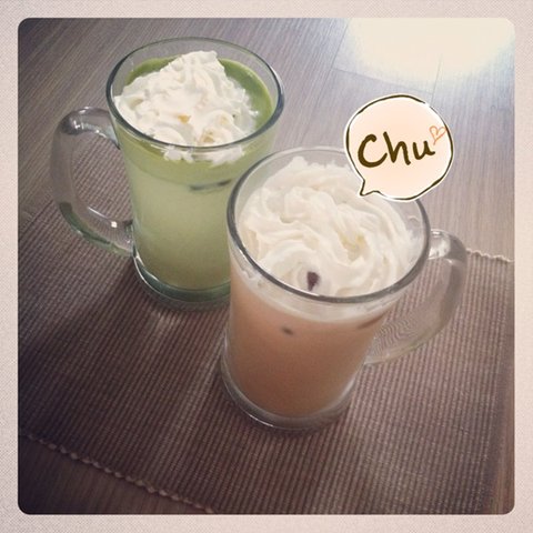 야매라떼랑 녹차라떼에 휘핑크림 듬뿍!
