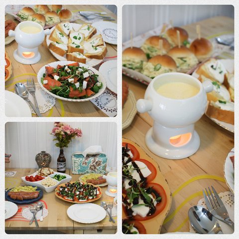 치즈퐁듀, 샌드위치, 연어치즈샐러드, 카프레제 등등...