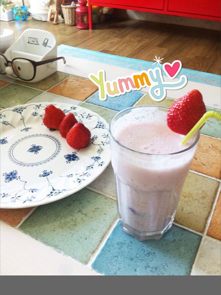 딸기랑 우유넣고 쉐낏쉐낏!~ 갈아서 만듬