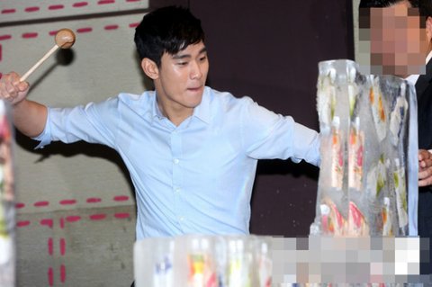 기껏 쫙 빼입고 갔더니 망치 쥐어주고 얼음 깨는 미션을 줘서 당황한 김수현?ㅎㅎ