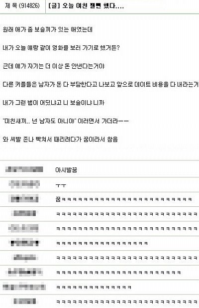 [글] 하..오늘 여친팰뻔했다 ㅡㅡ