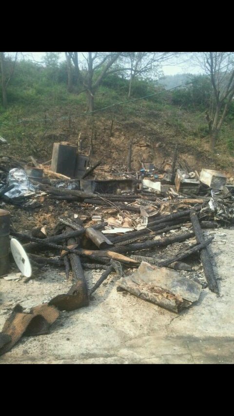 5월 12일 7시경에 집에 불이 났습니다. 큰 불로 인해 집은 수저하나 건질 것 없이 다 타버렸습니다.