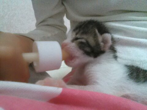 (당연 우유는 고양이 전용 초유를 줬음)