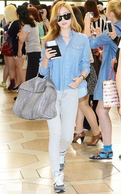 공포의 청청 패션을 입고 공항에 나타난 제시카