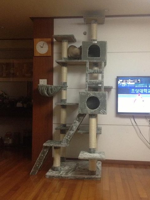 사실 구입전에는 이렇게 큰지 몰랐는데 집천장이랑 캣타워꼭대기랑 틈이 거의 없음 ㅠㅠ