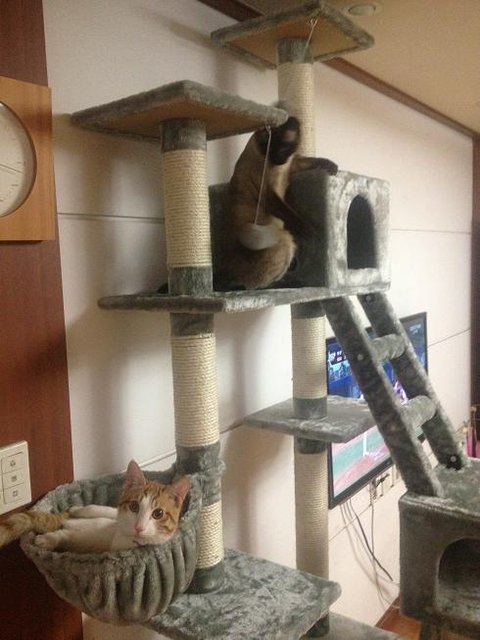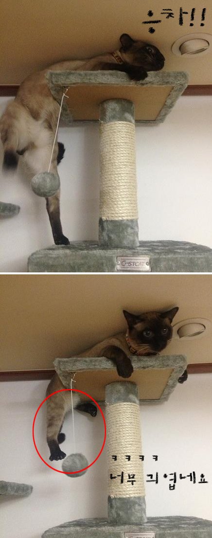 캣타워한테 하악하는 고양이 봤음? 춘심이는 그런애임 캣타워 앞에 3일동안 지나갈때마다 하악함...(대다나다...)