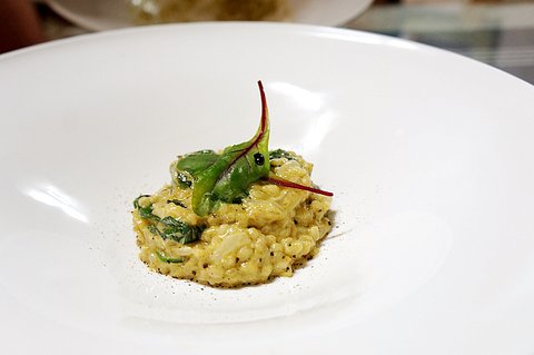 코코넛 크림을 넣은 크림 소스에 시금치를 넣어 리조또를 만들어 봤습니다