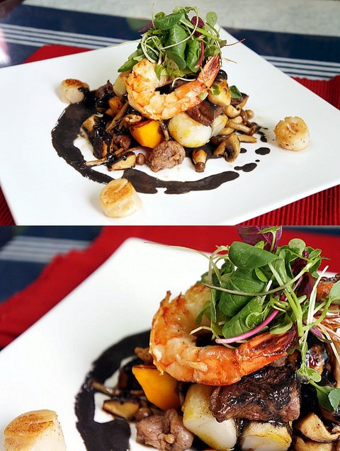 소고기 부채살과 버섯 볶음, 그리고 새우와 관자를 곁들인 음식으로 결정했어요.
