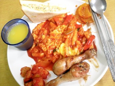 떡볶이그라탕/샌드위치/닭다리데리야끼/오렌지쥬스/단무지