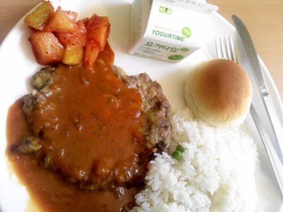 완두콩밥/햄버그스테이크/모닝빵/요거타임