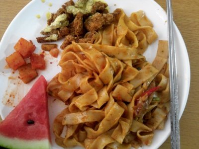 해산물볶음면/돈후라이드/수박/깍두기