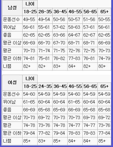 위 안정심박수 숫자는 손목에 손을 대시고 30초간 심박수를 체크하신다음 x2 를 하시거나 1분간 쟤보세요