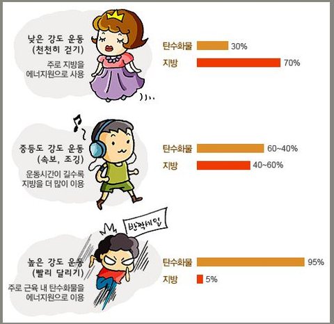 운동강도에 따른 체지방연소율이 다릅니다.