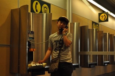 빅토리아로 가는 표를 사고 홈스테이 맘에게 픽업을 부탁하기 위해공중전화로 전화를 걸었다.