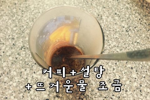 1. 우선 커피와 설탕 그리고 뜨거운물 조금 넣어커피와 설탕을 녹입니다!!! (믹스도 상관없어요~)