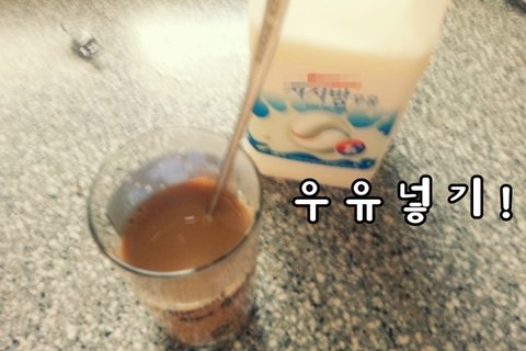 2. 시~원한 우유를 집어넣어주세요!(아...사진이 흔들렷네요)