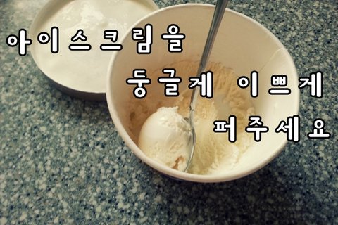 6. 아빠숟갈에 물을뭍혀서 아이스크림을 둥글게퍼주세요!(저는...스쿱이 없거든요)