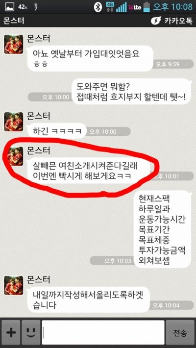 1. 사진은 글쓴이가 아님. 글쓴이가 카톡으로 운동봐줬던 동생임.2. 분명 반말로 이루어져있다고 미리말하고 거부감이 있으면 뒤로가기 추천함.3. 사진속의 주인공은 아직 진행중. 완성형이 아님.4. 내용은 나태해진 다이어터에게 정신차리라고 주절거리는 잡소리임.