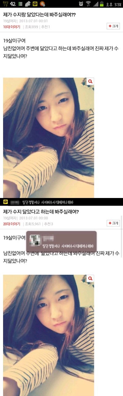 이렇게 10대 이야기와 20대 이야기에 올라와있었습니다. 처음에는 작성자가 누군지 궁금하지도 않았고, 단지 그냥 모르는사람이 제사진을 마음대로 올렸다는게 좀 화가 났습니다. 그래서 댓글에 도용하지말라고